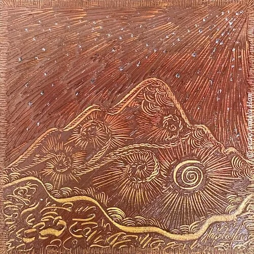 Listening to “The Siren’s Seduction,” I imagine entering a wonderland, lured in by the ecstasy of sound. I run, leap, twirl, fly in a frenzy as though I’m wearing 100-league boots fit for Atalanta and she beats every competitor in her race. Each way I step, I’m catapulted into a thousand and one worlds tempting to me to come hither. Wonderlands within a wonderland… this painting is one of them.
