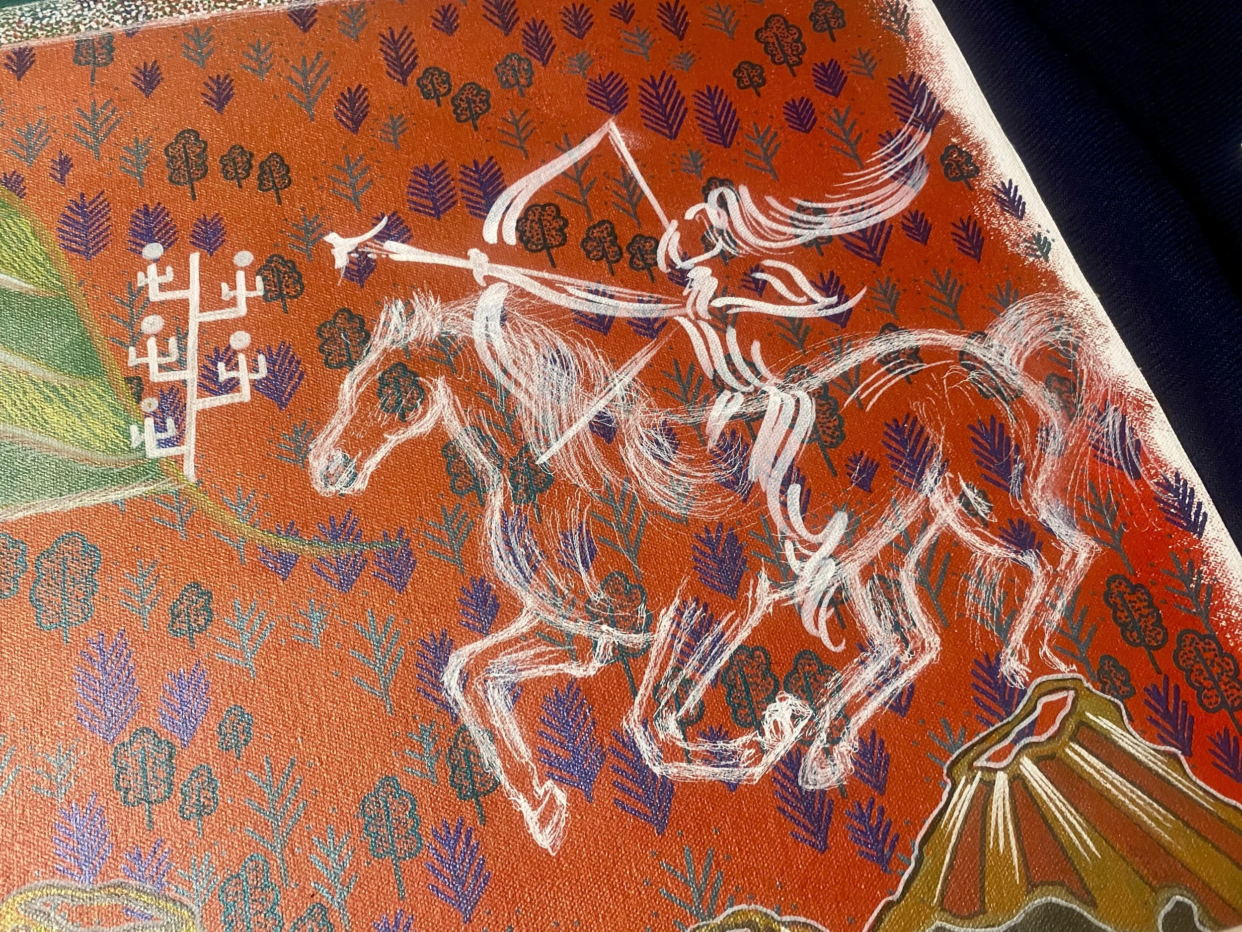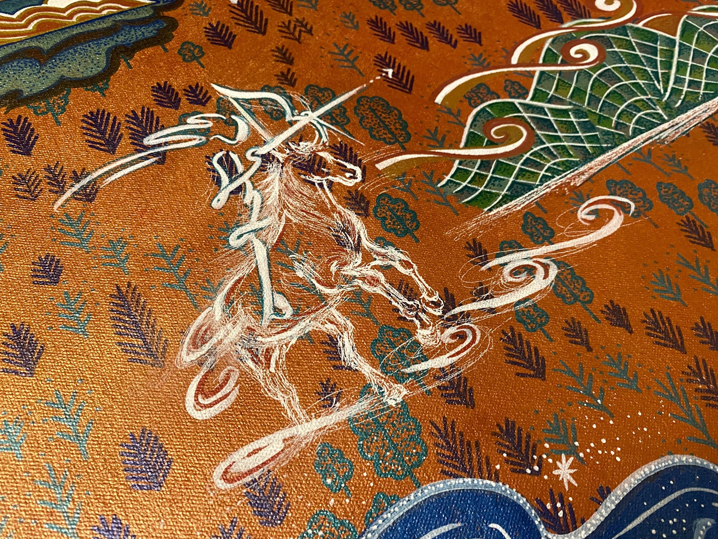 Synopsis: “Eight horse archers flee into the mountain where earth and sky meet, having suffered injustices for being born women. The eight begin building a Paradise where their truths are respected. One day the mountain abruptly turns, opening a gateway into one of four realms. The archers descend the mountain to confront a society festering with misogyny. For four tireless years, they enact justice for the women of that realm. Afterwards, the eight ascend the mountain to resume building their Paradise.