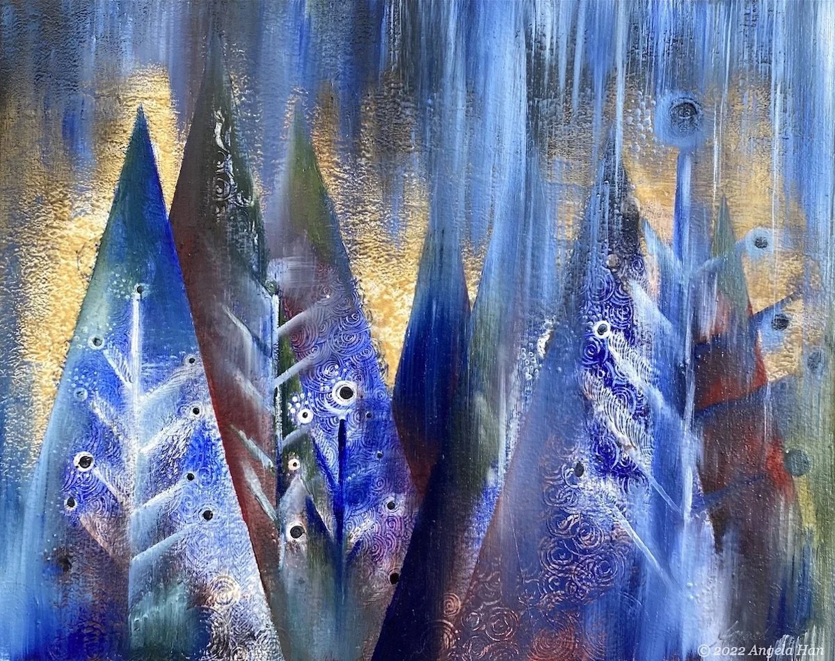 In creating the artwork for this series, I envision myself as Nüwa. I hand-mixed oil paints (natural earth pigments + walnut oil) that represent the five elements and created landscapes teetering between hope and doom.
